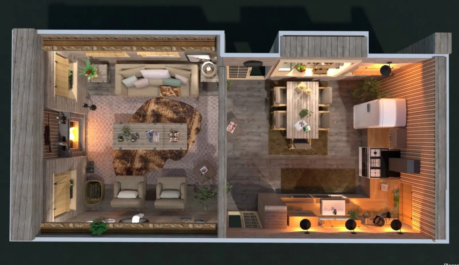 Once you have your layout, it’s time to decorate. You can furnish and decorate your space using furniture, fixtures and decor items from our extensive catalog of over 7,000 objects. Drag and drop them into the layout and add light fixtures, carpets, sliding patio doors, kitchen islands and more to create the perfect home. Whether you’re creating your dream home or a business, be that a gym, a daycare or anything else, you can do it with Planner 5D.