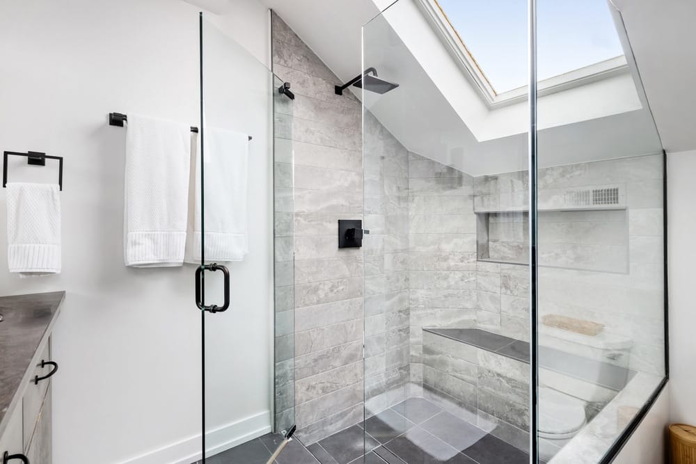 If you want a primary bathroom that feels more like a spa, you can add luxurious features that automatically elevate your space. One way to do this is to install a spacious walk-in shower. Rainfall showerheads, body jets, or a bench are a great way to elevate your shower stall. Your next shower will feel like heaven.